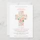 Blush and peach watercolor florals of hydrangeas, eucalyptus and peonies in a cutout of a cross. All text is customisable, as well as the backer rsvp. Customise the title for any religious event.