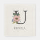 Modern Floral Customisable Monogrammed Letter U Napkin