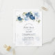 Customise this bridal shower invitation postcard by clicking the "Personalise" button above. The card features a modern elegant chic dusty blue flowers with white, light blue, and olive green bloom.