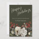 Elegant florals with script typography on a very deep green background. Double-sided, with "warmest wishes" and "Happy New Year!" on the back.