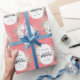 The design features a white modern floral frame with simple typography on pink background. This elegant yet simple personalised wrapping paper is perfect for those Bridal showers return gifts. It can be customised by changing the Bride's name and event date. For further customisation, click on "edit using design tool".