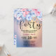 Beautiful Modern 40th Birthday Invitation. Design features of watercolor background with gold glitter and floral elements in pink and blue.