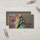 A cool, modern, trendy business card featuring colourful, art flowers with a pair of scissors. Perfect for hair stylists, hairstylists, hair dressers, cosmetology, cosmetologists, salons and more!