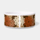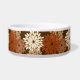 Pet bowl in a modern take on a traditional Japanese floral kimono print - stylised flowers in shades of taupe tan, rust brown, and beige on a dark chocolate brown background