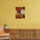 Modern Floral Kimono Print, Dark Brown and Tan Poster