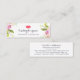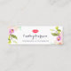 Elegant floral business cards feature bouquets of watercolor painted peony and rose flowers in pastel shades of blush pink and spring green. Your name and title or profession are displayed in the centre in modern lettering on a white rectangular element, topped by a pink lip print kiss. Add your full contact details, including social media links or handles, to the reverse side.
