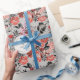 This elegant Modern Floral Names Wedding Wrapping Paper showcases a hand-drawn red and black flower pattern on a stylish taupe background, featuring hydrangea, hibiscus, jasmine, and bignonia blooms. Personalise with your heading, names, and date. Perfect for engagement parties, couples showers, weddings, or any romantic celebration.