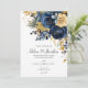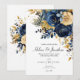 Modern Floral Navy Blue Gold Elegant Wedding Invitation