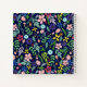 Floral botanical with floating foliage, pretty stylised flowers, leaves, berries, acorns and accent polka dots in shades of green, blue, pink, purple and yellow with accents in orange, red and brown. Set on dark midnight express blue. Use the templates to personalise with your name or message in pink font on a dark blue nameplate framed in pink.