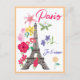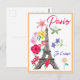 Modern Floral France Paris je t'aime Eiffel Tower Travel Postcard.