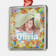 Folksy Boho Bohemian Floral Pattern Photo and Name Christmas Ornaments perfect for Baby's 1st Christmas, or Newlyweds 1st Christmas,