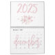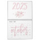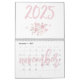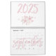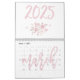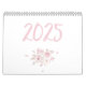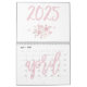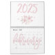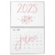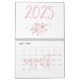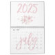 Modern wall calendar 2025 with beautiful illustrations of roses and pink script text written inside the calendar.
