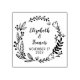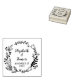 This "Save the Date" rubber stamp features a flower/branches frame with couple names and date.