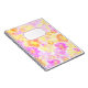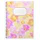 Customised tie dye blooming flowers fashion trend design pattern notebook with school name sticker, for plenty of thoughts, dreams, ideas and knowledge. Modern korean aesthetic orchid floral tie dye pattern in saturated pink, yellow, peach, orange colour. Shiburi dye style pattern home decor. Tiedye flower pattern, rainbow tie dye colours