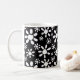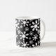 This mug has a beautiful white flower pattern on a black background. The flowers are in a watercolor look in black and white.