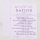 Add laughter and lively conversation to your celebration with this Modern Amethyst “Would She Rather” Bridal Shower Game. Designed in soft lavender with elegant amethyst typography and a delicate heart accent, this fully customisable stylish game card keeps guests engaged while guessing the bride’s favorite things. Perfect for modern, romantic showers, it coordinates beautifully with the Modern Amethyst collection and creates a fun, memorable moment for everyone.