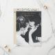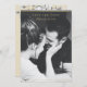 The front of this elegant and modern, black and white wedding save the date has space for one, preferably black and white, photo of a couple. On the back, roses. orchids, a peony bud and eucalyptus and greenery leaves, hand-drawn in graphite pencil and layered, make for a modern, sophisticated, elegant and chic wedding save the date that is a modern take on a traditional floral wedding wreath. The texture of the black pencil shows through on the white paper, giving it a sense of effortless elegance. The frame is also an updated version of a classic, giving the design structure but keeping a sense of modern freshness. The pearl on the back gives a very subtle spot of colour that supports that very fine gold thread running through the frame and some of the greenery.