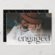 Announce your engagement with these beautiful, minimalist full bleed cards featuring a horizontal or landscape orientated photo with "engaged" overlaid in black lettering accented with stars. Personalise with your names and an indication that wedding details will follow.