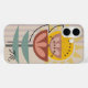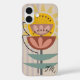 The vector illustration on this case shows a modern fantasy flowers and a bright shining sun on a partly striped background. The colours are trendy and very popular in this year. The monogram fonts are a template object and can be changed easily into any other text.It is also possible to chose a different font type, font colour or font size