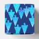 Mid-Century Modern, flower embellished, Christmas trees in a silky gradient - trees in shades of pale blue and aqua on a deep cobalt blue background