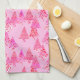 Mid-Century Modern, flower embellished, Christmas trees in a silky gradient - trees in shades of pale to deep pink, accented with fuchsia, on a soft pastel pink background