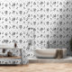 This metallic look wallpaper features modern flowers and leaves on a white background. The pearl like beads make this a unique modern design that makes a statement. This peel and stick is a great decor solution if you are renting. Created with A.I.
