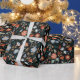 Modern Flowers Black Orange Blue Botanical Floral Wrapping Paper
