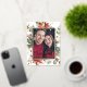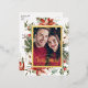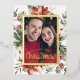 Modern Foil Foil Holiday Postcard. This elegant photo postcard features a beautiful frame of hand-painted watercolor greenery, flowers, and berries with a real gold frame and script. Find matching items in the Christmas Holiday Poinsettia Collection.