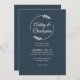 Modern Foliage Frame Indigo Blue Wedding Invitation