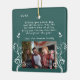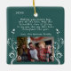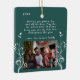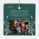 Modern Foliage Wishes Family Photo Green Christmas Ceramic Ornament. Modern simple white foliage on dark green background. Add your family photo, your wishes and year.