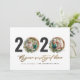 Modern minimal foliage wreath Merry Christmas 2020 the year we stayed home script holiday Christmas card. Hand painted eucalyptus, minimal foliage and modern rustic rattan wreath give this holiday card a luxurious feel. In classy greens, browns and greys.