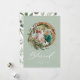 Modern minimal foliage wreath blessed Christmas script holiday Christmas card. Hand painted eucalyptus, minimal foliage and modern rustic rattan wreath give this holiday card a luxurious feel. In classy greens, browns and greys.