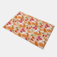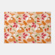 Adorable foxes rendered in a modern take on folk art, surrounded by autumn leaves and fruit against a tan background