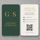 Modern Forest Green Gold Monogram QR Code Business Card