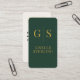 A sophisticated business card design featuring a rich forest green background with elegant gold accents. The bold GS monogram creates a strong first impression, while the reverse side includes refined typography, clear contact details, and a QR code for seamless digital connections. Ideal for consultants, entrepreneurs, and professionals seeking a modern yet timeless brand identity.