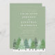 Celebrate your special day with the timeless beauty of nature. This snowy woodland Winter Wedding Invitation features a serene woodland pine forest painted in delicate watercolor, set against a stylish sage green background. The hand-painted watercolor fir trees in soft greens and frosty blues capture the quiet magic of a snowy landscape, creating a design that is both calming and sophisticated.