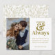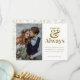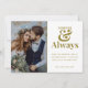 This elegant photo wedding thank you card features the romantic phrase "Forever and Always" in gold script typography, making it the perfect way to express your heartfelt gratitude. Designed with your favourite wedding photo, this modern wedding thank you card with photo is a beautiful keepsake for family and friends who shared in your special day.