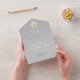 A simple modern design with a symbolic flower, white script type and a white outline on light grey. The backside has all the wedding details, personalise the front and back to the details of your special day. A classic look for a formal affair. Matching style on Bridal Shower, RSVP, Save the Date and more. The Hawaiian Lei flower, Plumeria is a symbol of "new beginnings".