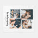 This simple yet ultra modern blanket features four of your favourite personal photos in a unique, layered look photo grid. The black and white design features your family name in elegant, trendy handwritten script typography, and has a spot for the year established in a coordinating sans serif font.