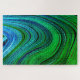 Modern Fractal Art Waves Wavy Green Blue Abstract Jigsaw Puzzle