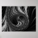Modern Fractal Black White Metal Nautilus Swirl Poster