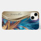 Modern Fractal Blue Gold Handwritten Name Case-Mate iPhone Case