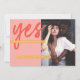 A bold and unique Save the Date Design for modern couples. Fresh colour palette of coral pink, red and golden yellow, bold calligraphy Script plus your image of choice. All colours can be changed using the Design tool if you want!