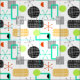 A trendy clean fresh modern geometric funky shapes design inspired by retro mid century patterns in on trend shades of green, orange, yellow, blue, black and white. Fabulous colour pop pattern.