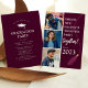 'Friends who Graduate together, PARTY together!' - This modern design is perfect for friends to celebrate their acheivements together by throwing a joint graduation party. The design features the option to upload 3 square photographs. The burgundy block can be changed to any colour to represent your school and a tassel to symbolise a graduation cap. The reverse has a customisable party template for you to add all your event details.