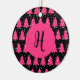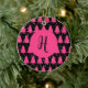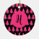 Modern Fuchsia & Black Christmas Tree Monogram Ce Ceramic Ornament