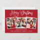 Modern Fun Calligraphy Script Merry Christmas 3 Photo Holiday Card - Red Background