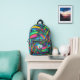 Fun and bright multi-colour backpack personalised with a monogram, name or initials in your choice of font styles, size, colour or placement or delete the sample text to leave the area blank in EDIT. ASSISTANCE:  For help with design modification or personalisation or if you would like coordinating items, contact the designer BEFORE ORDERING via the Zazzle Chat MESSAGE tab below or email makeitaboutyoustore@gmail.com.