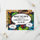 A fun, cool and trendy comic book inspired save the date card that puts the wham, zap, pow into your wedding date announcement. The reverse features your special photo. Designed by Thisisnotme©