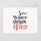 Modern, fun, creative, funny Save Water Drink Wine Postcard
